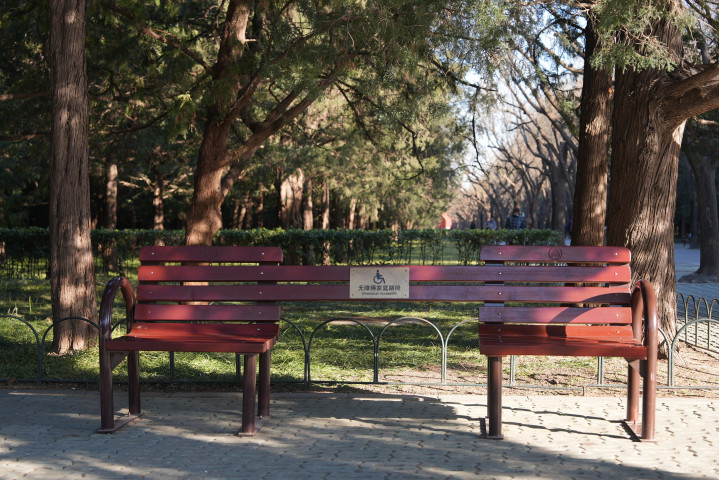近几年,天坛公园游客量增加,游客的需求也越来越多样化。记者了解到,天坛公园去年开展了游客调查,超两万人次参与。调查结果显示,游客对与家庭成员共同休憩的意愿和需求较为明显。经过研判,天坛新增了无障碍家庭路椅,精细巧妙的设计让乘坐轮椅或婴儿车的游客可以与家人朋友一起休憩,坐在中间的还能享受被家人朋友环抱的温暖感觉。
